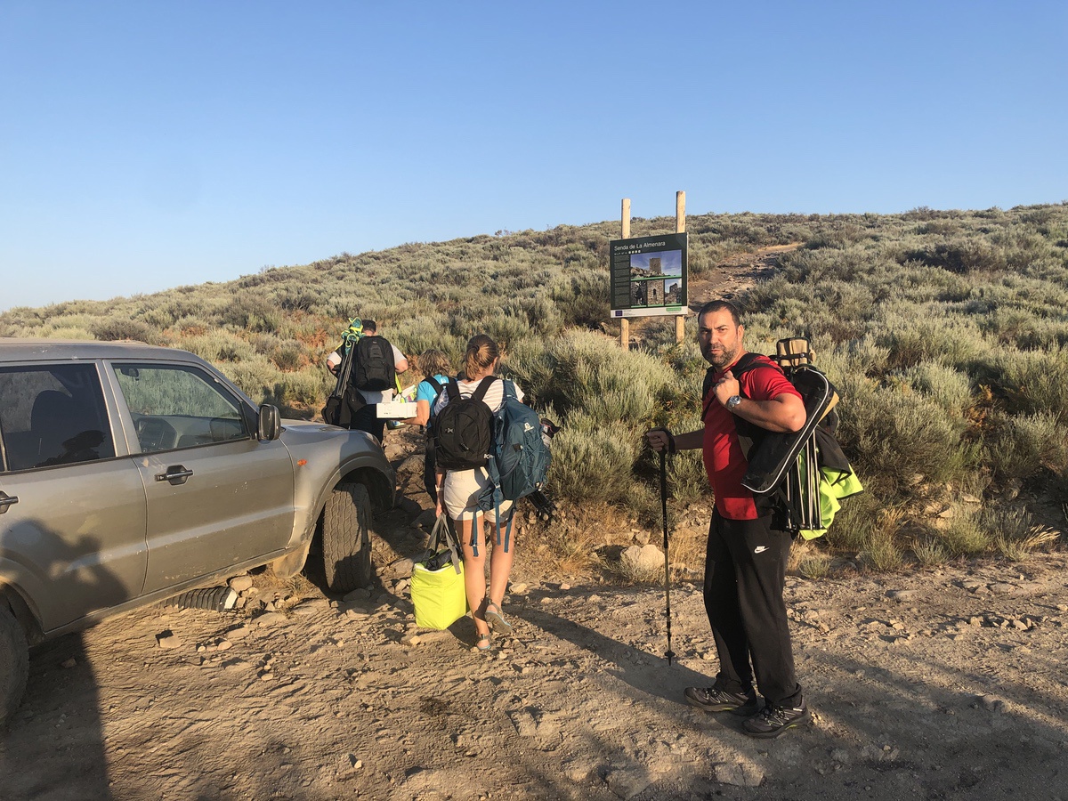 El grupo quedó en Cadalso para reunirse y comenzar nuestra subida a la torre. Quiero agradecer a María Jesús Nuevo del Centro de Interpretación Comarcal Sierra de Gata que nos prestó su todo terreno para poder subir los equipos, hasta lo más cerca de la torre que pudimos, una vez que le coche ya no podía subir más tocó una caminata de unos 20 minutos en pendiente cargados como burros hasta llegar a nuestro destino. María Jesús nos acompañó durante toda la noche explicándonos dónde estábamos ubicados y las peculiaridades del lugar