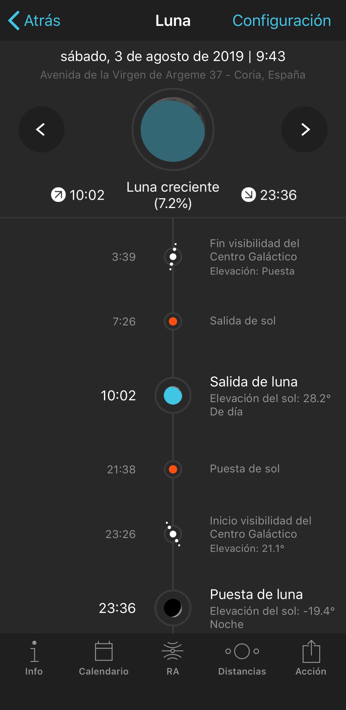 Previo al curso ya habíamos previsto con Photopills que condiciones de luna y de vía láctea íbamos a tener para ese día.